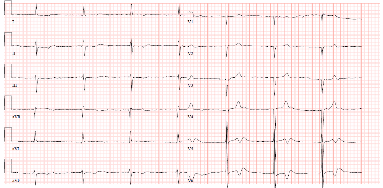 EKG 1: AVB III. stupně s náhradním komorovým rytmem
