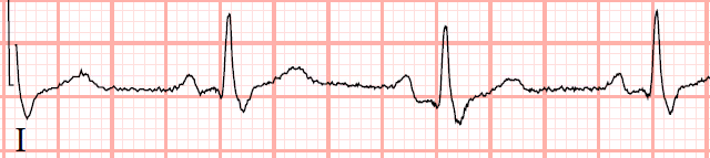 kompletní RBBB - úplné zablokování vedení pravým Tawarovým raménkem - abnormální aktivace pravé komory levým raménkem