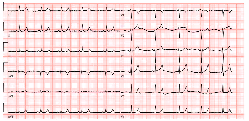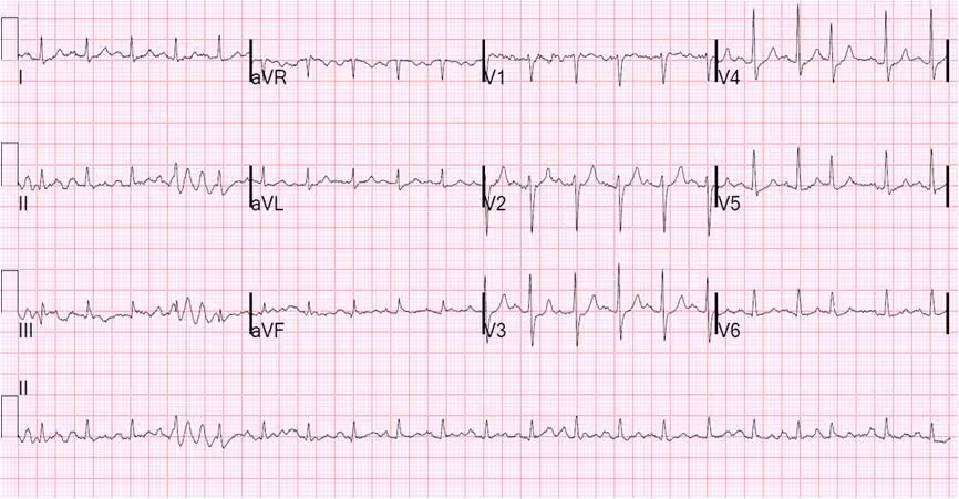 EKG 2B: Stejný pacient po vyřešení hyperkalémie