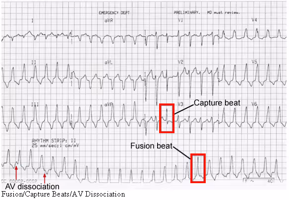 EKG 3: KT s dobře viditelnou AV disociací (např. svod I)