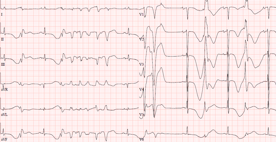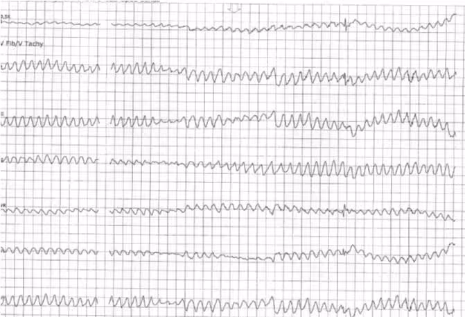 EKG 4: R na T fenomén vedoucí k Torsade de Pointes u pacienta s dlouhým QT intervalem