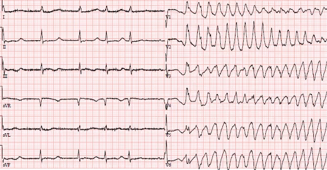 EKG 1: TdP u pacienta s lékově indukovaným dlouhým QT