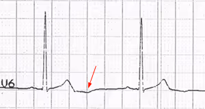 malá výchylka (většinou kolem 0,5-1 mm) ihned za vlnou T