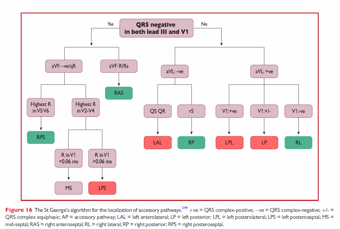 Pro určení lokalizace akcesorní spojky z povrchového EKG můžeme využít různých algoritmů (např. St. George algoritmus)