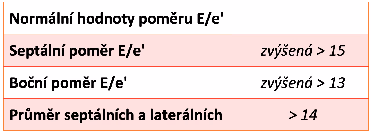 U zdravých jedinců je poměr E/e´ < 8.