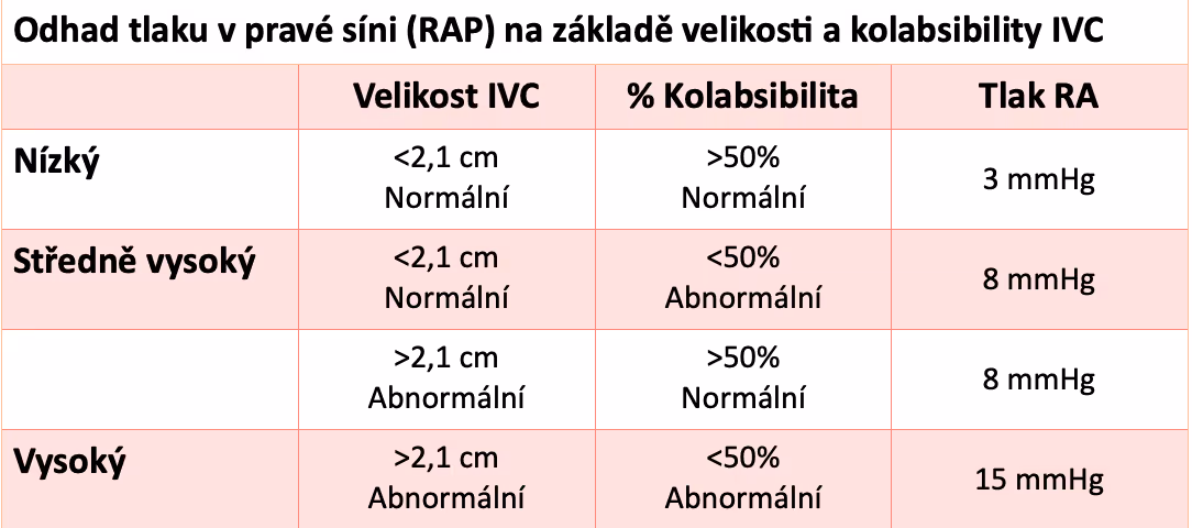 - Měření by mělo být provedeno 1-2 cm od spojnice IVC a pravé síně.