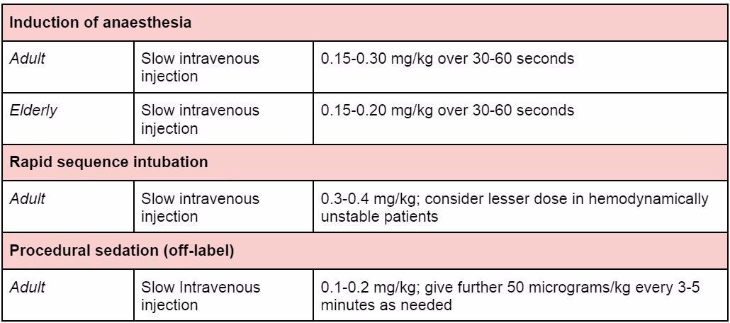Ultra short-acting nonbarbiturate (benzylimidazole) general anaesthetic agent with minimal cardiovascular effects.