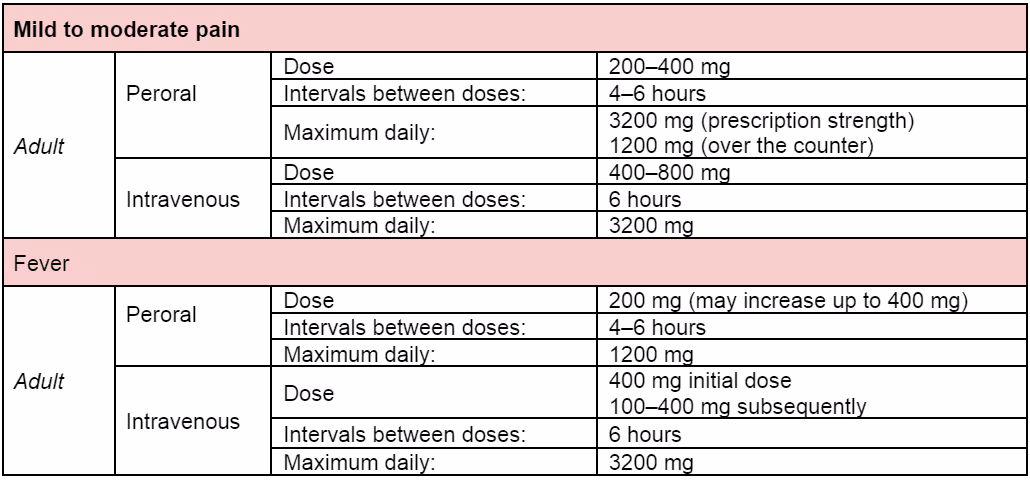 Infusion of ibuprofen should be administered over at least 30 minutes.