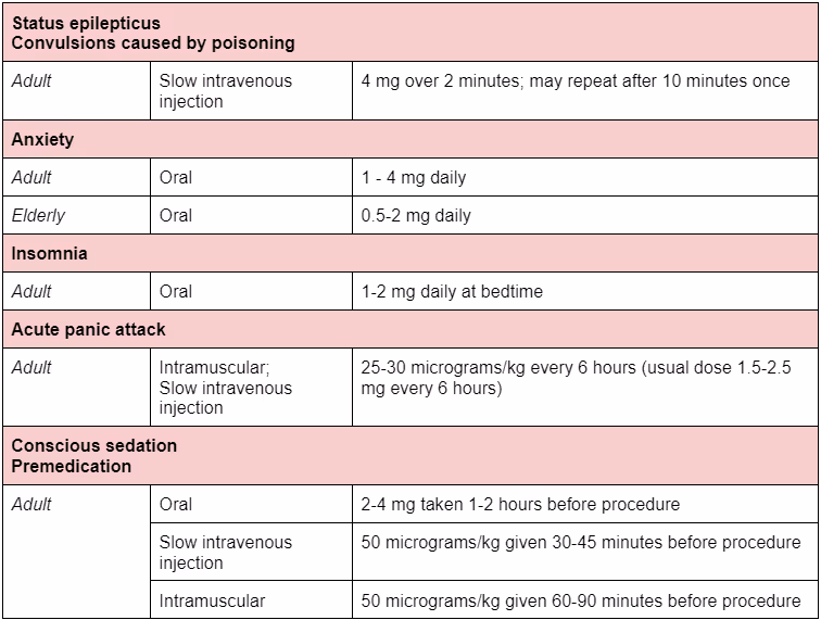 Dose-related effect. Causes sedation, anxiolysis, anterograde amnesia, muscle relaxation and has an anticonvulsant effect. At higher doses causes cardiorespiratory depression.