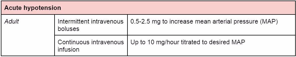 Used mainly as a peripheral vasopressor.