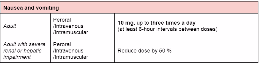 Metoclopramide should be used for a maximum of 5 days.