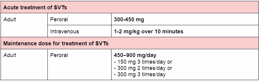 Blocks sodium channels on cardiomyocytes which leads to their reduced excitation. This reduces myocardial automaticity and slows down the impulse conduction as well as prolongs refractory period of cardiomyocytes.